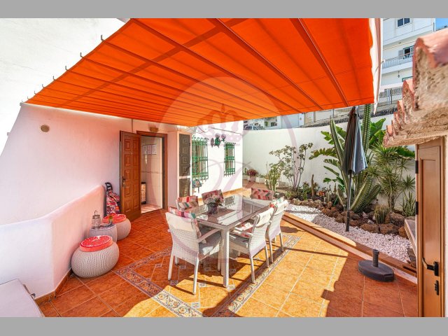 This spacious apartment, accessible by elevator and boasting an enviable corner location, features a terrace off the living room with stunning sea views and a large landscaped terrace at the rear. The apartment is in excellent condition and comprises an entrance hall, a living/dining room with direct access to the front terrace offering magnificent sea and pool views, a separate kitchen with integrated appliances, and three double bedrooms, all with fitted wardrobes. The master bedroom has a large en-suite bathroom with a shower and direct access to the front terrace. There is also an additional fully tiled bathroom with a sink. One of the property's highlights is the rear terrace, which offers panoramic sea views and ample outdoor space, including a barbecue area and a private garden. The price includes all furniture and fittings. The gated community has low community fees, is well-maintained, and features a heated communal swimming pool. This makes an excellent holiday home or permanent residence in a quiet residential area, close to the beach and all amenities.