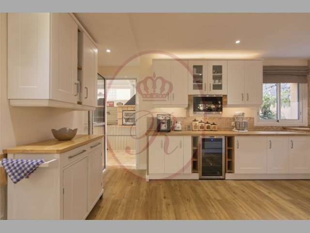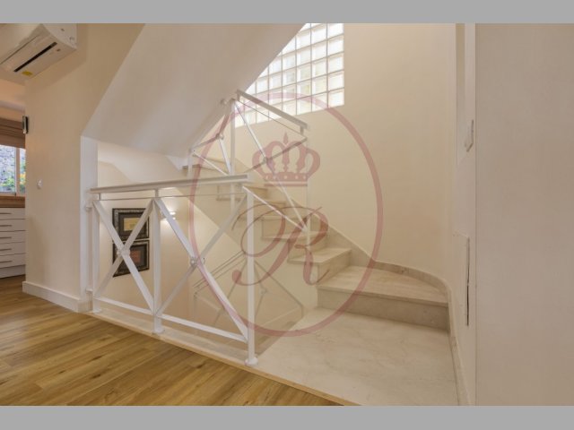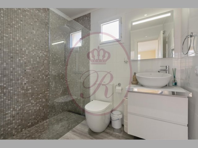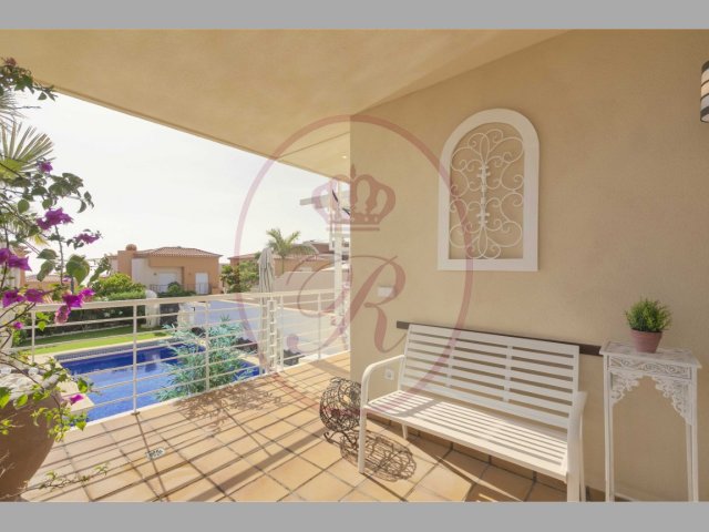 In front of the property there is a private heated swimming pool with a sunbathing area and a spacious upper-floor terrace—conveniently accessible from the main living space.